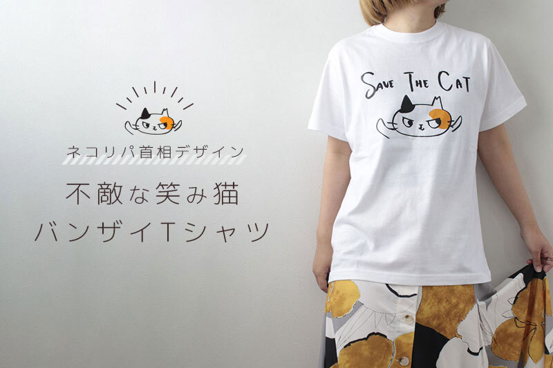 - 「ネコリパ首相デザイン 不敵な笑み猫バンザイTシャツ」(Yahoo! ショッピング)=https://store.shopping.yahoo.co.jp/neco-republic/adesign-tshirt.html