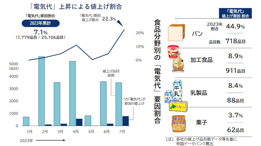 • 「電気代の上昇」が要因の「食品値上げ」 7月は2割超に TDB調べ