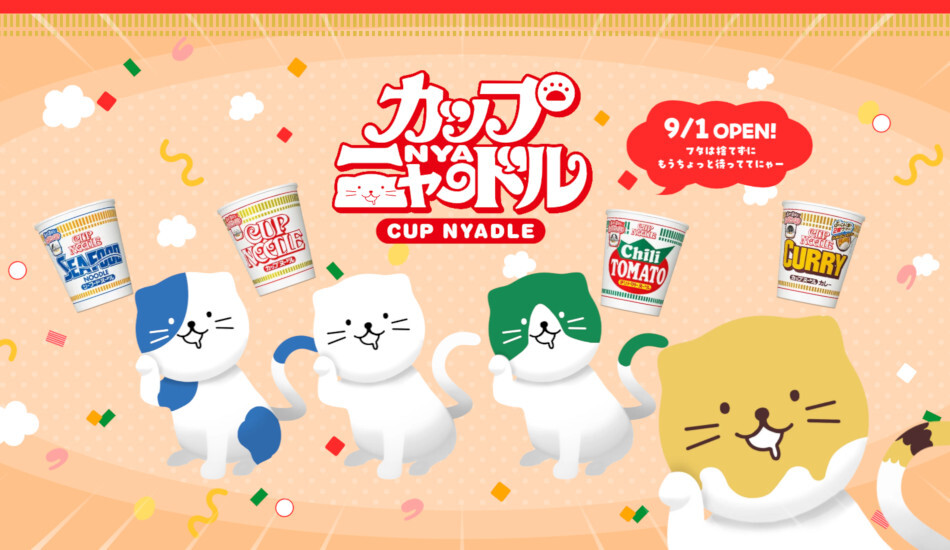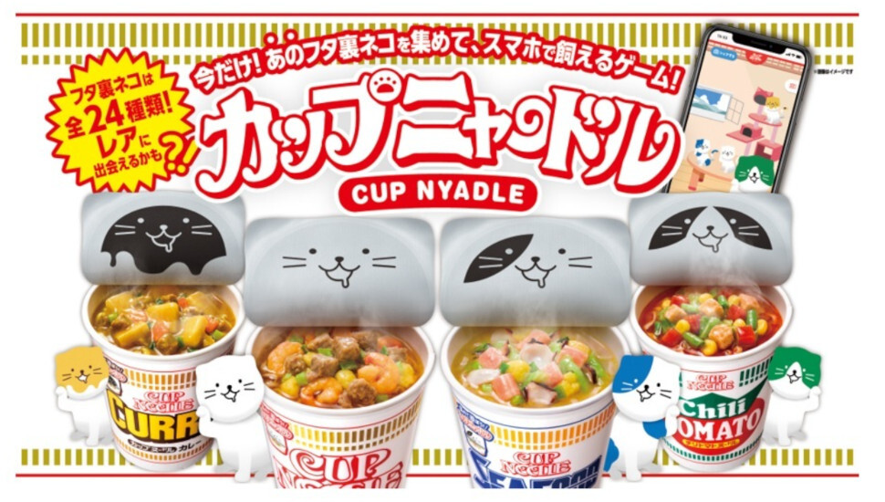 カップヌードルの「フタ裏」に住むネコ「ニャードル」を、スマホの中で「飼える」キャンペーン