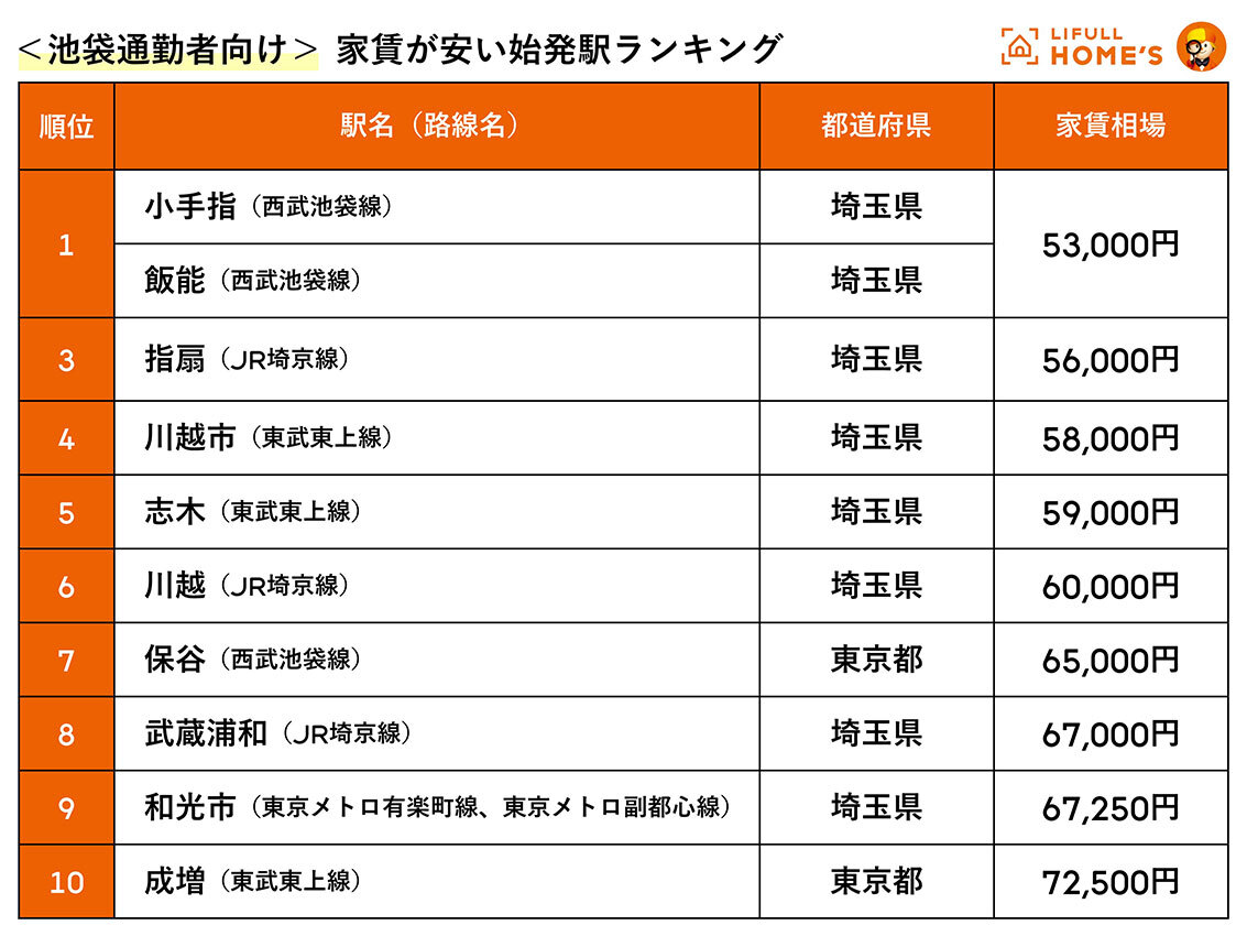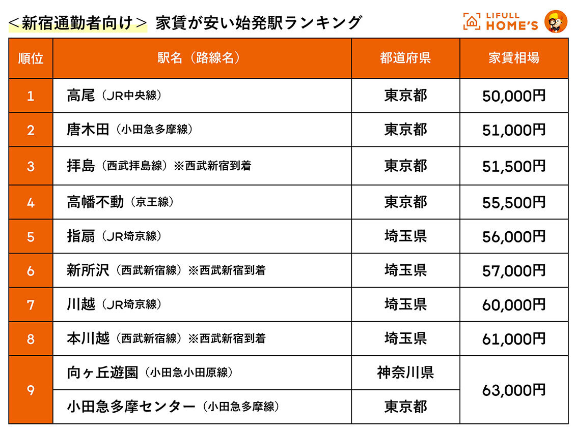 • 新宿・渋谷・池袋にそれぞれ1時間以内で行ける始発駅、家賃は最安5万円台から