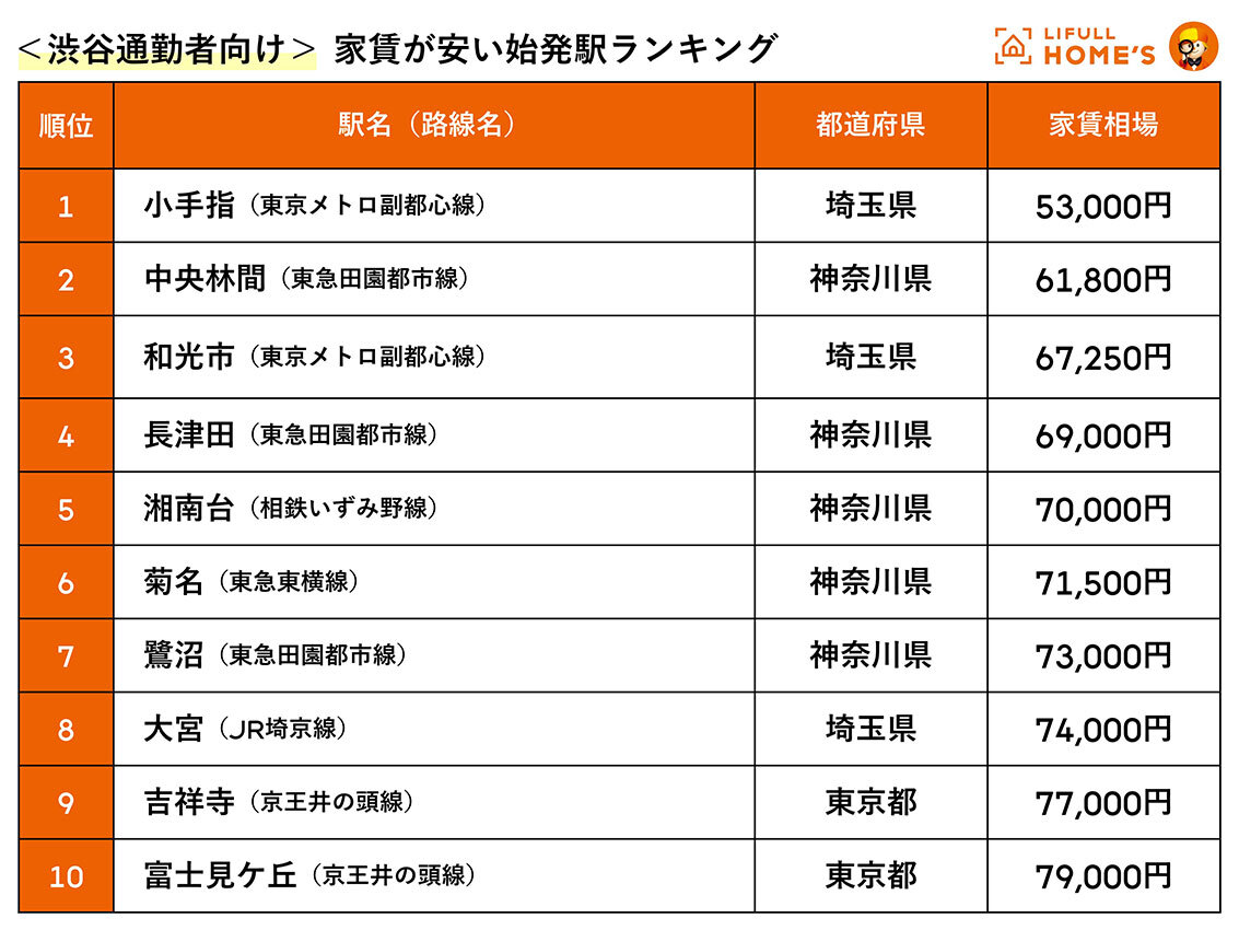 新宿・渋谷・池袋にそれぞれ1時間以内で行ける始発駅、家賃は最安5万円台から