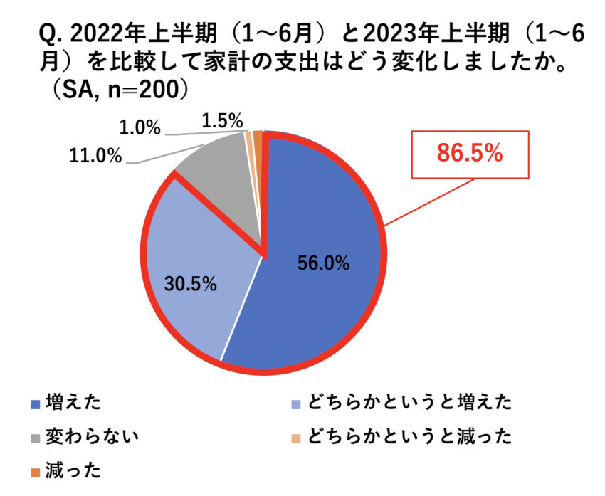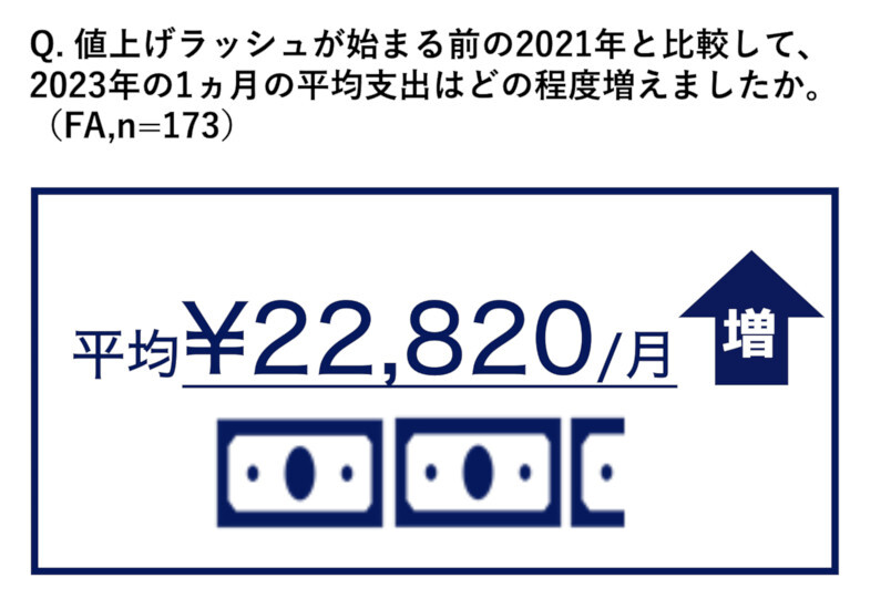 2021年と比較して23年の月額支出は「平均2万2820円」増えた