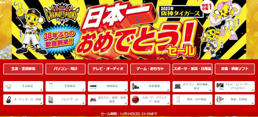 • 上新電機、38年ぶりの歓喜到来!! 「阪神タイガース 日本一おめでとうセール」開催中