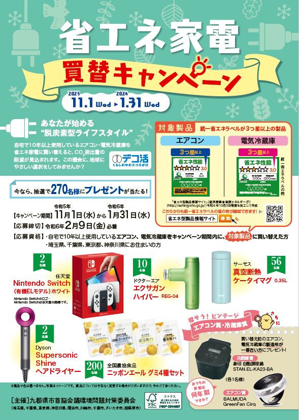 • 関東エリアの1都3県居住者対象、省エネ家電・高効率給湯器 買い替えキャンペーン