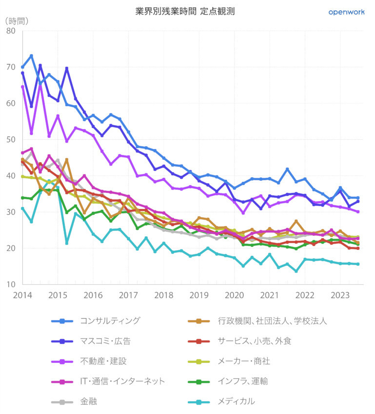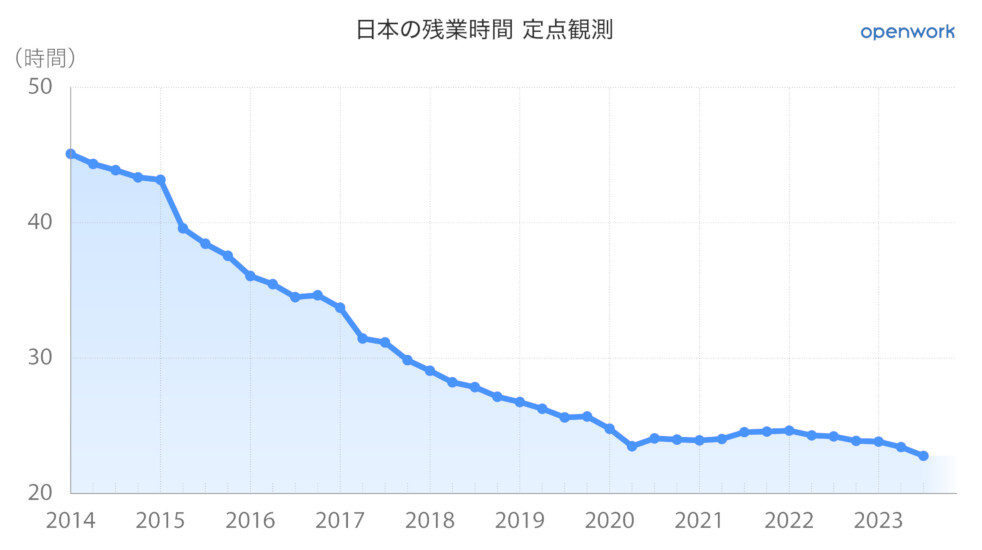 日本の残業時間、「22.76時間/月」で集計開始以降最も少ない