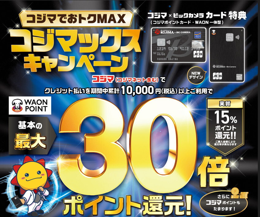 コジマ、WAON POINT「最大30倍還元」のキャンペーン開始!