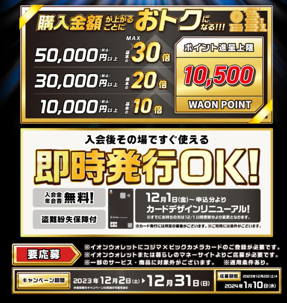 コジマ、WAON POINT「最大30倍還元」のキャンペーン開始!