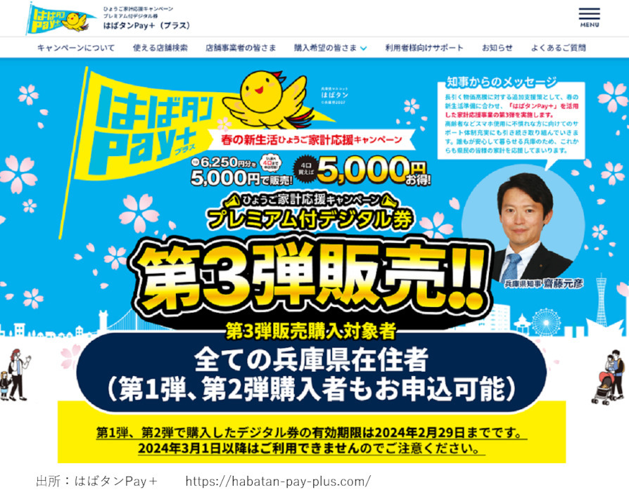 • プレミアム率25%! 兵庫県在住の全員が対象のデジタル券「はばタンPay+」がスタート