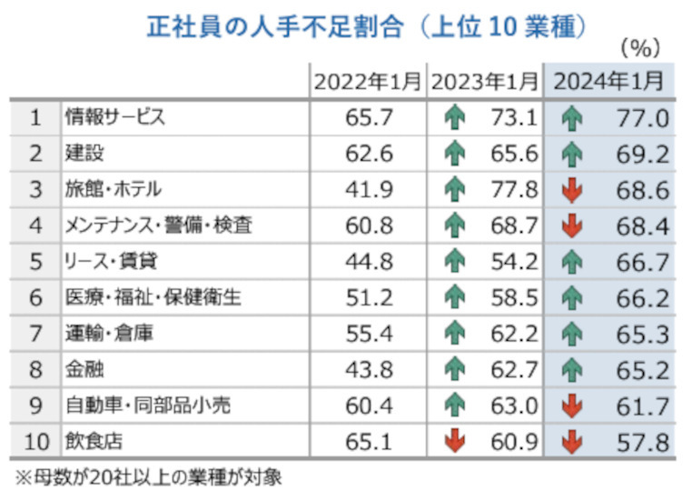 TDB調べ、正社員の人手不足は52.6%、「人手不足倒産」は過去最高