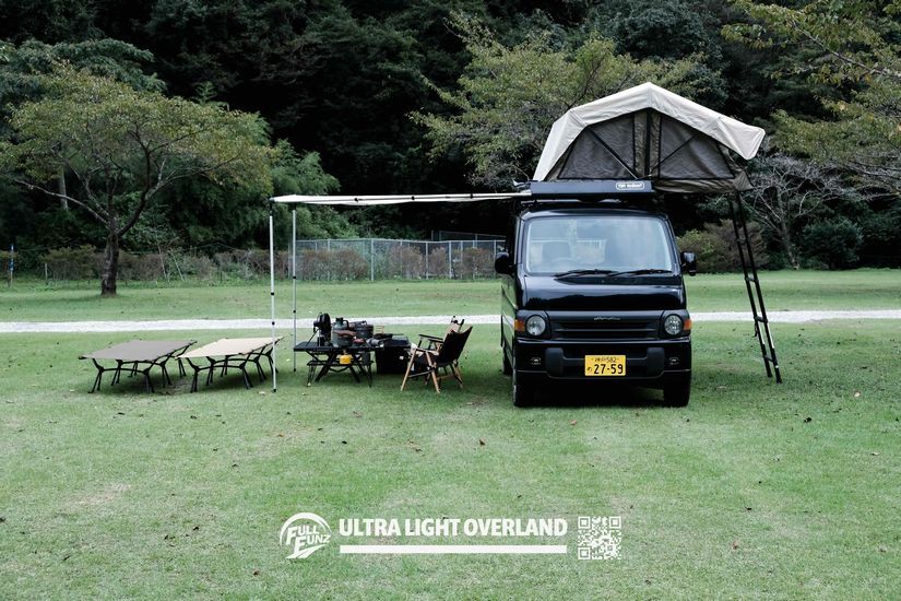 • ミニマルなキャンプギア、「ルーフテント」と「サイドオーニング」を格納するルーフラック