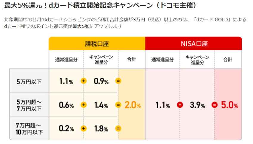 • 「dカードのクレカ積立」提供開始 3カ月間最大5%還元の開始記念キャンペーンも