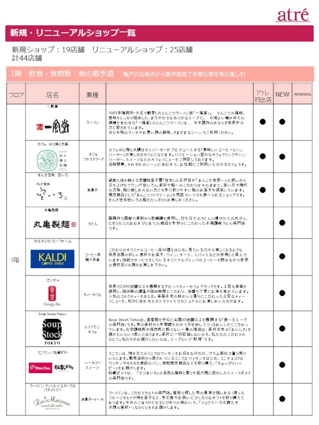 アトレ亀戸、9月中旬に増床リニューアル!ラーメン「一風堂」も初出店
