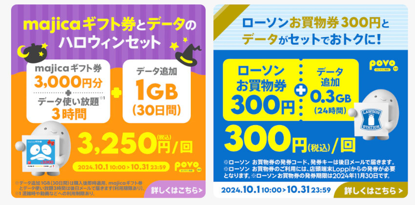 • povo2.0、月末セール開催中 「データ追加1GB(30日間)」を499円で提供など