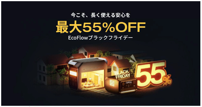 人気商品も最大55%オフ! Amazon.co.jpのセールにあわせて「EcoFlowブラックフライデー」開催