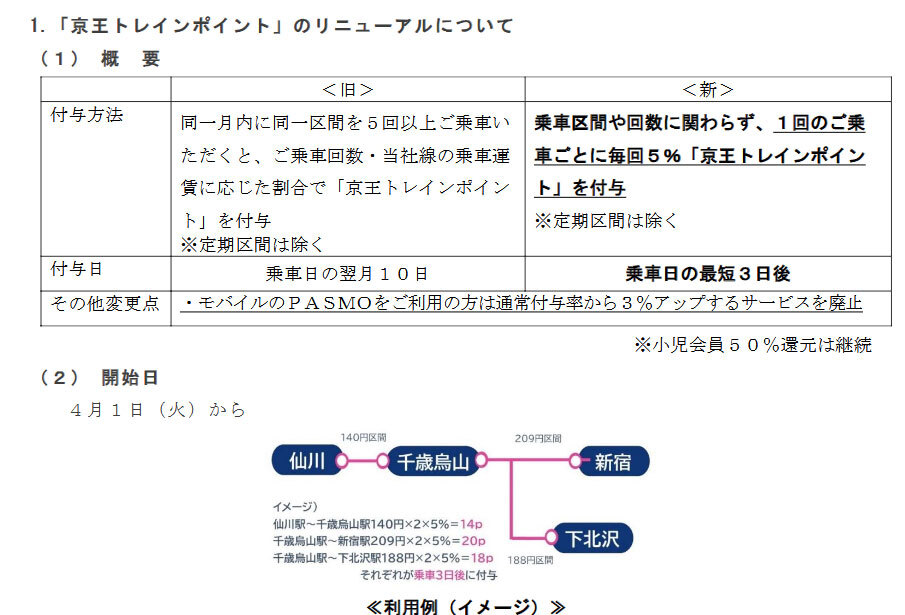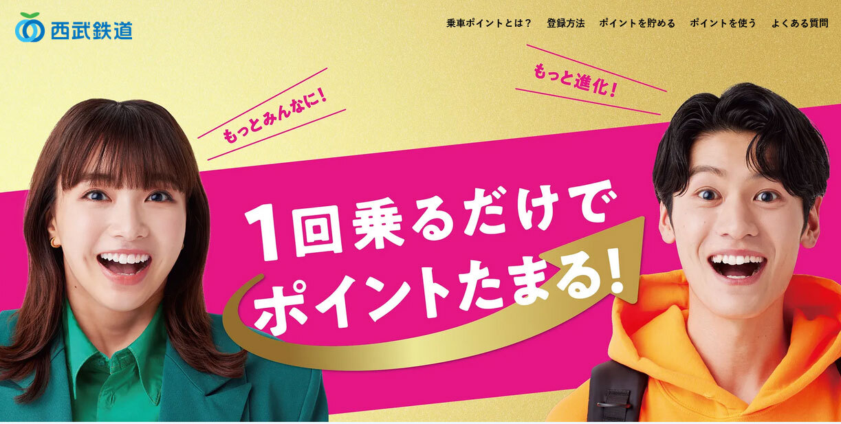 1回目からポイント進呈! 今春リニューアルする京王電鉄・西武鉄道のポイントサービスをまとめて紹介 2025/03/25 18:00 Tweet 1/3 「西武の乗車ポイント」特設サイト トップページ電車とバスで貯まるTOKYU POINT 記事詳細ページ 注目の記事 西武鉄道、2025年の乗車ポイントサービスは乗車1回からポイント進呈! 「西武の乗車ポイント」でたまるポイント「SEIBU Smile POINT」はどこで使える? 利用運賃の5%分のポイントがたまる! 「京王トレインポイント」がリニューアル 2022年春からPASMOカードの払い戻しが有料に 繰り返し利用を促す 京急プレミアポイント、4月5日リニューアル アプリ新登場 外部リンク 「西武線 乗車ポイントサービス」=https://www.seiburailway.jp/railways/seibujoshapoint/ 「京王トレインポイント」=https://www.keio.co.jp/keiotrainpoint/ 「京急プレミアポイント 鉄道乗車サービス」=https://www.keikyu-point.jp/