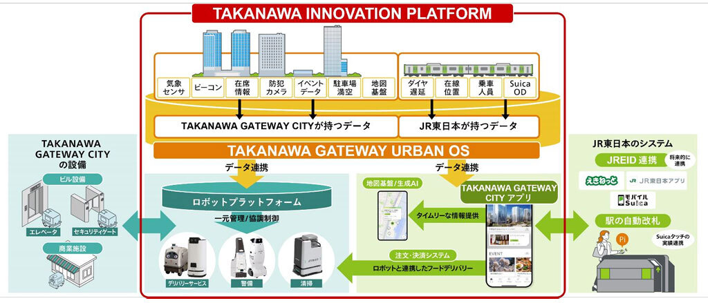 TAKANAWA GATEWAY CITYでロボットによるフードデリバリーサービス開始、街独自のアプリを配信 2025/03/29 13:00 Tweet 1/5 「TAKANAWA INNOVATION PLATFORM」の提供イメージ 記事詳細ページ 注目の記事 JR東日本とKDDI、「TAKANAWA GATEWAY CITY」で共創 高輪ゲートウェイで非接触・非対面のロボット実験、JR東日本が実施へ 本日開業「高輪ゲートウェイ駅」、山手線の品川‐田町間に30番目の駅誕生 高輪は何の「玄関口」なのか? 山手線の半世紀ぶりの新駅 外部リンク 東日本旅客鉄道=https://www.jreast.co.jp/ 「TAKANAWA GATEWAY CITY」=https://www.takanawagateway-city.com/