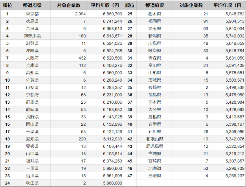 • 都道府県別・上場企業の平均年収ランキング 2位・3位は意外?