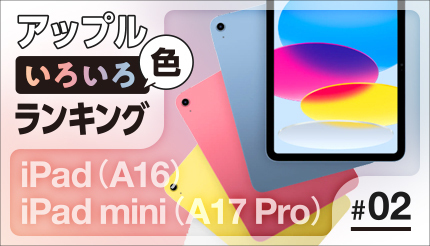 25年4月のBCNランキング iPad(M4/M3搭載以外)の人気カラーは? 2025/06/09 17:00 Tweet 1/2 2025年4月 M4/M3非搭載iPad カラー別販売台数ランキング 記事詳細ページ 注目の記事 25年4月のBCNランキング 「M4」「M3」搭載の最新iPadの人気カラーは? 「GIGAスクール」特需が再来!25年の「タブレット端末」市場は期待大 新しい11インチと13インチの「iPad Pro」「iPad Air」、プロモデル「Apple Pencil Pro」は2万1800円 文系でクリエイターでもない僕がM4 iPad Proを買った理由(後編) タブレット端末のおすすめを選び方と一緒に解説! iPadやGalaxyなど実売ランキングから本当に売れている5製品を紹介 外部リンク 「iPad」=https://www.apple.com/jp/ipad/ Apple=https://www.apple.com/jp/