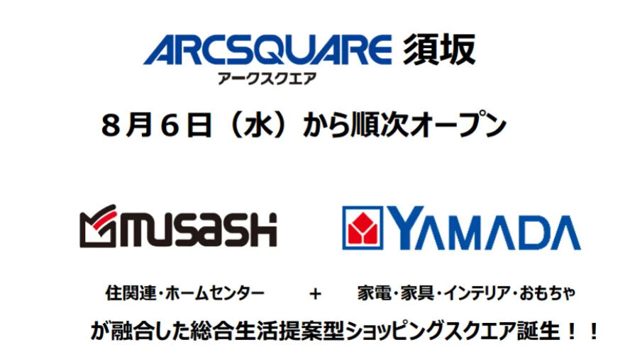 ホームセンタームサシ+ヤマダデンキのショッピングスクエア「アークスクエア須坂」 8月6日から順次オープン 2025/07/26 17:30 Tweet 1/4 業種を超えてコラボレーション 記事詳細ページ 注目の記事 「イオンモール須坂」10月3日オープン 「イオンシネマ」や長野県初57店舗を含む専門店約170店舗 大阪にヤマダデンキ+スーパービバホーム+ロピアの「アークスクエア茨木」オープン 新潟に「ロピア」が初上陸! アークランズ運営のロピア1号店として スーパービバホーム+ヤマダデンキのショッピングスクエア「アークスクエア湘南平塚」 「エイビイ」は10月16日先行オープン ホームセンタームサシ・ビバホーム、全店舗で「楽天チェック」を順次導入 外部リンク 「ホームセンタームサシ須坂店」=https://hc-musashi.jp/suzaka/ ヤマダデンキ=https://www.yamada-denki.jp/ ヤマダホールディングス=https://www.yamada-holdings.jp/