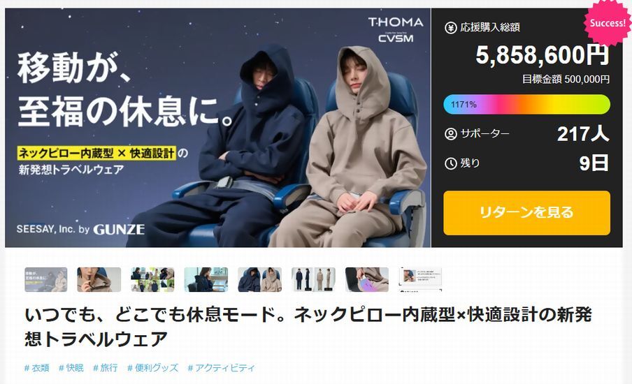 パーカーとネックピローが一体化!ありそうでなかった高機能「トラベルウェア」の実力を検証 2025/08/14 18:00 Tweet 1/8 SEESAYが「Makuake」で展開しているネックピロー内蔵パーカー「トラベルフーディー」をレビュー 記事詳細ページ 注目の記事 寝苦しい夏の夜を科学の力で乗り切る!リカバリーウェア「SCiENSLEEP」で分かった睡眠のブースト体験 工事不要ですぐ涼しい!残暑を乗り切る「スポットクーラー」3選 暑さの死角なし、「スポットクーラー」おしえて! 猛暑に勝つ! タンスのゲンから超強力スポットクーラー2モデル ビックカメラ、夏冬兼用の「スポットエアコン」を3万4800円で販売! 外部リンク SEESAY=https://www.seesay.jp/