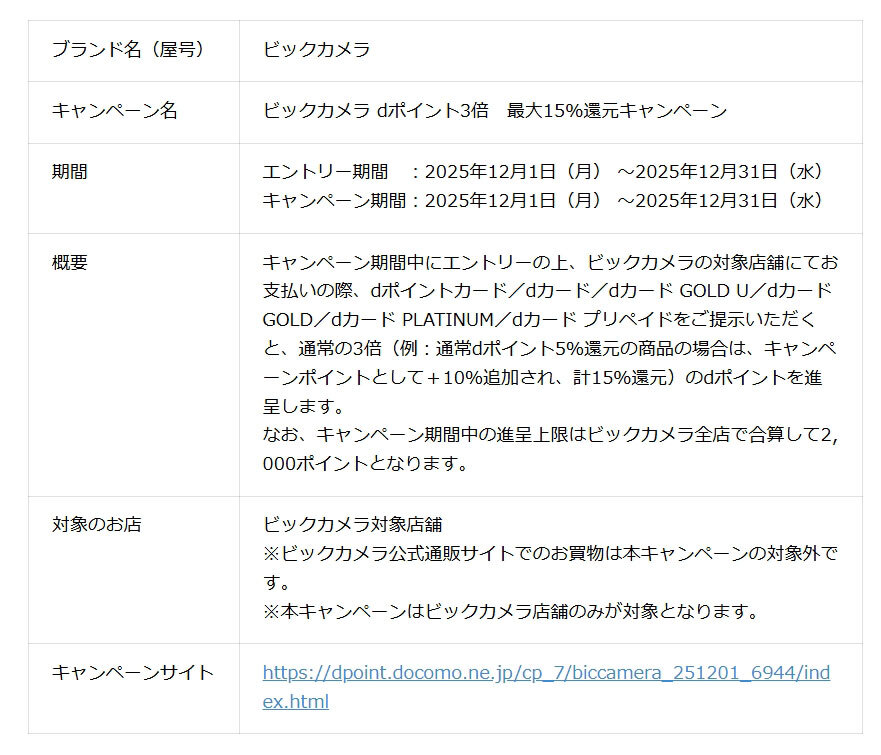 • ビックカメラ・ノジマ・エディオンでお得! dポイントキャンペーン12月に開始