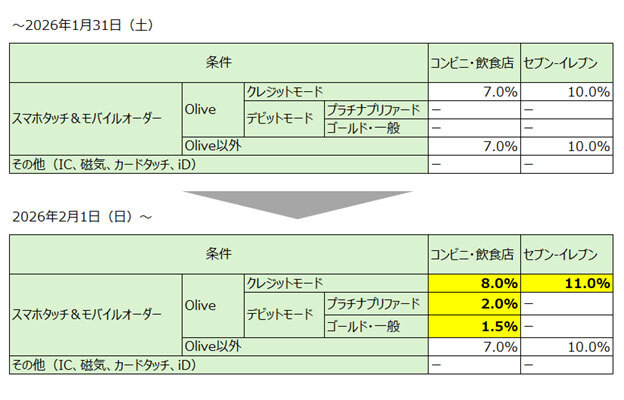 • 三井住友カード、「対象のコンビニ・飲食店で最大8%還元」に変更、「リワードアップ U25」も開始