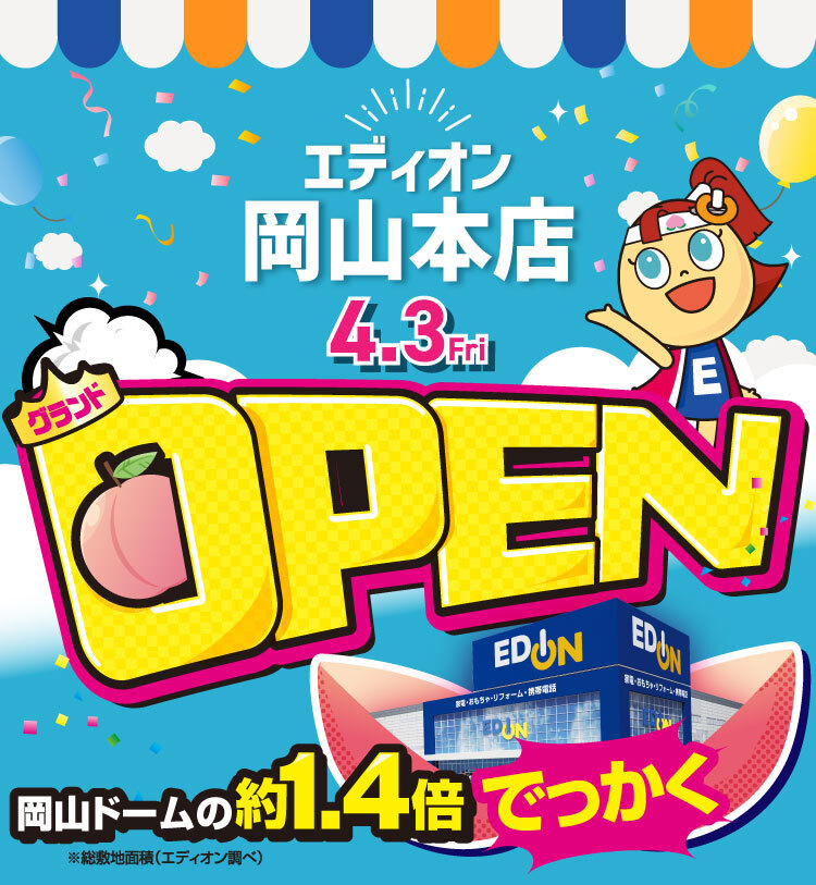 「エディオン岡山本店」、4月3日にグランドオープン!