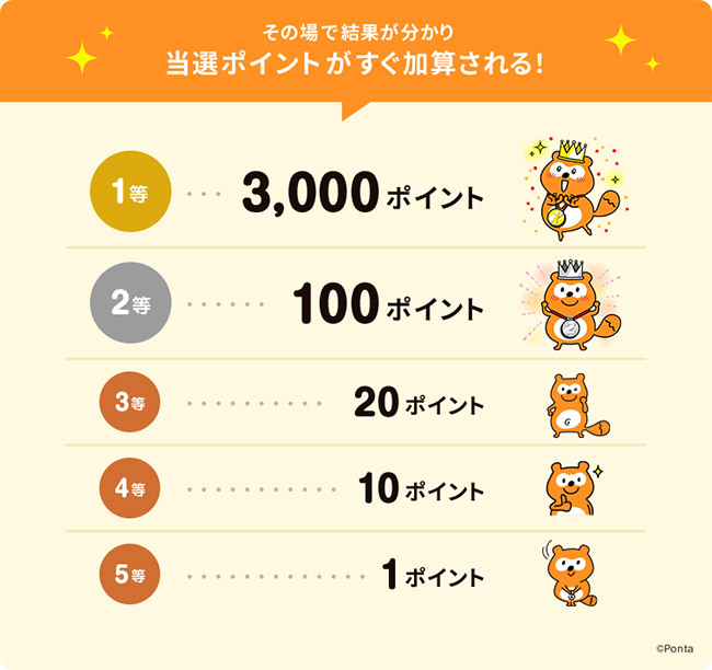• 8月22日スタート「たぬきの大抽選会」 最大3000ポイント当たる