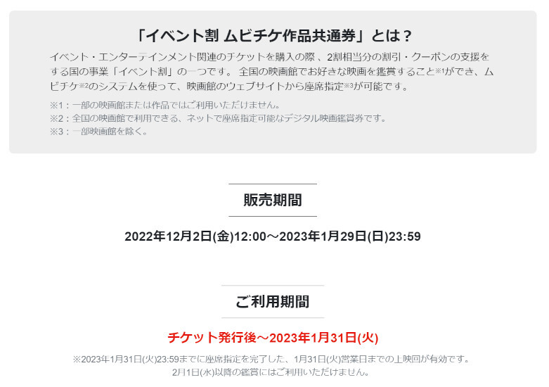 • 今だけお得な「イベント割」に「ムビチケ」が追加! 12月2日から販売開始!