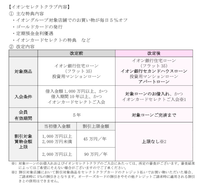 • 「イオンセレクトクラブ」リニューアル、対象の住宅ローン完済までずっと割引など