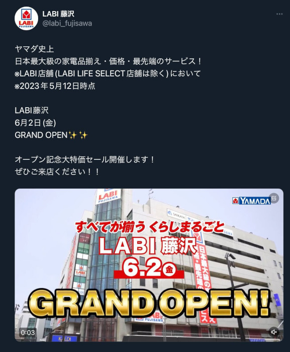• 今藤沢がアツい! ヤマダデンキ「LABI 藤沢」6月2日オープン!