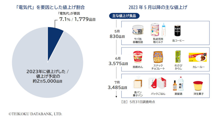 • 「電気代の上昇」が要因の「食品値上げ」 7月は2割超に TDB調べ