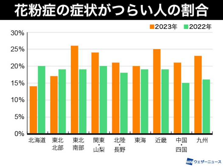 2023年春の花粉飛散量と症状は? ウェザーニュース調査