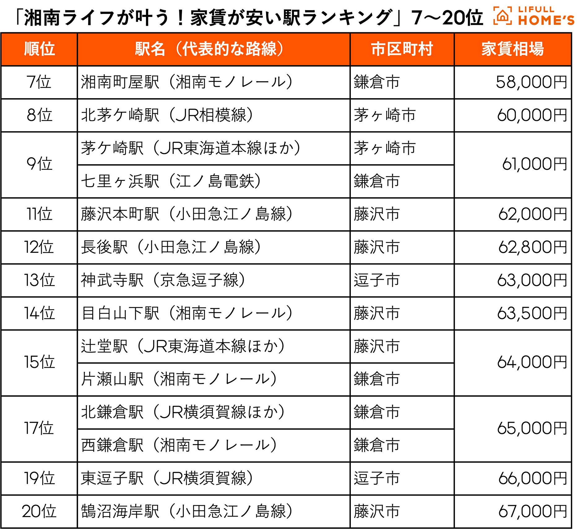 • LIFULL調べ、湘南ライフが叶う家賃が安い駅ランキング 1位は大磯 2位は?