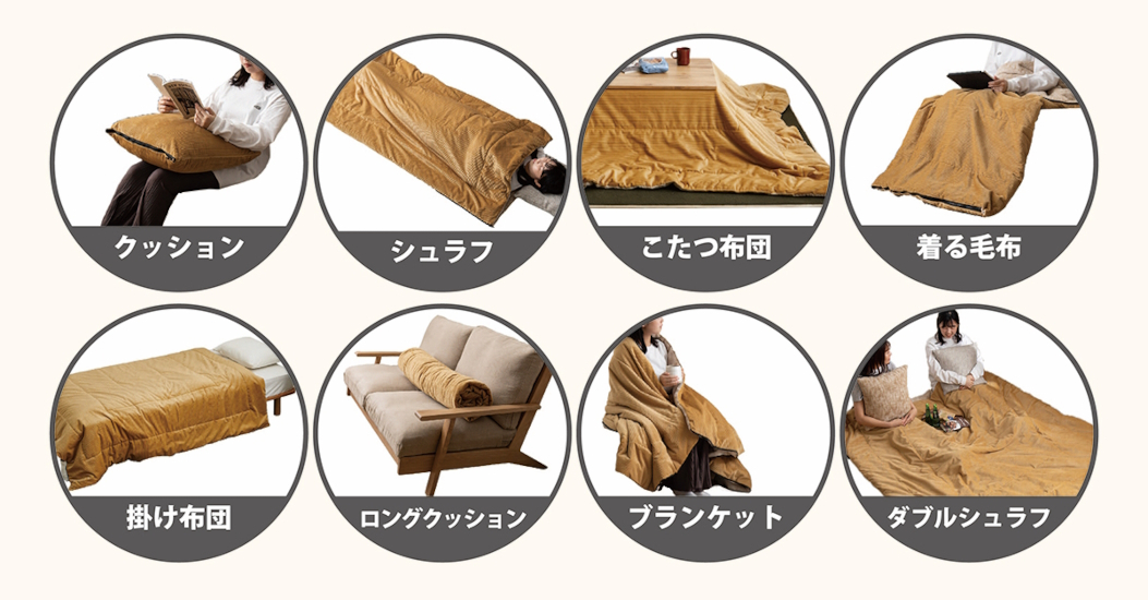 • アウトドアや防災に、こたつ布団や寝袋にもなるマルチクッション「ラーゴ」