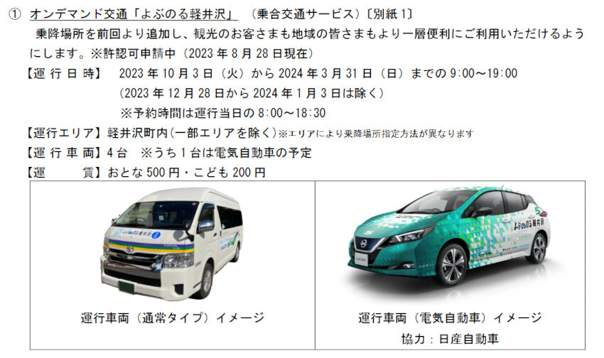 • 2023年度 地域・観光型MaaS「回遊軽井沢」 10月3日からサービス開始