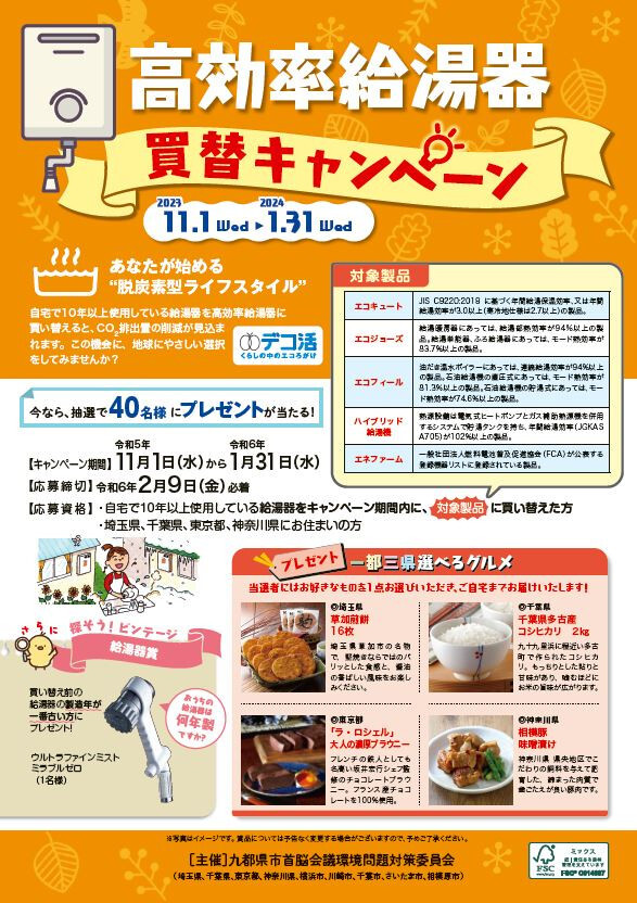 • 関東エリアの1都3県居住者対象、省エネ家電・高効率給湯器 買い替えキャンペーン