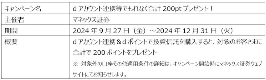 • dアカウント連携でマネックス証券でdポイントがたまる・つかえるように