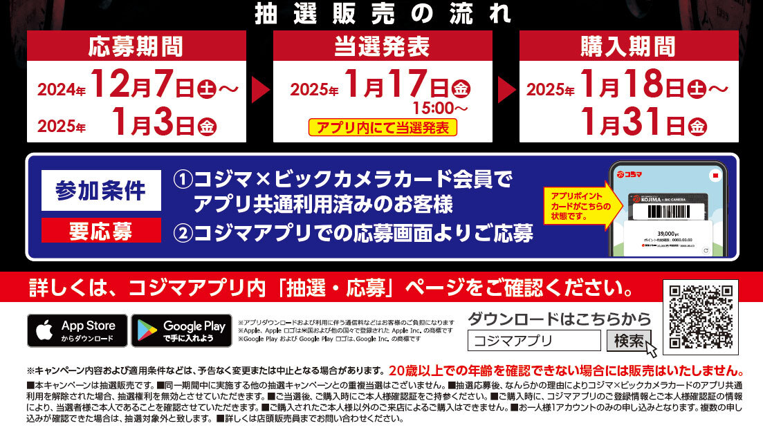 • コジマ、サントリーの希少なウイスキー「山崎」「響」「白州」の抽選販売を実施!