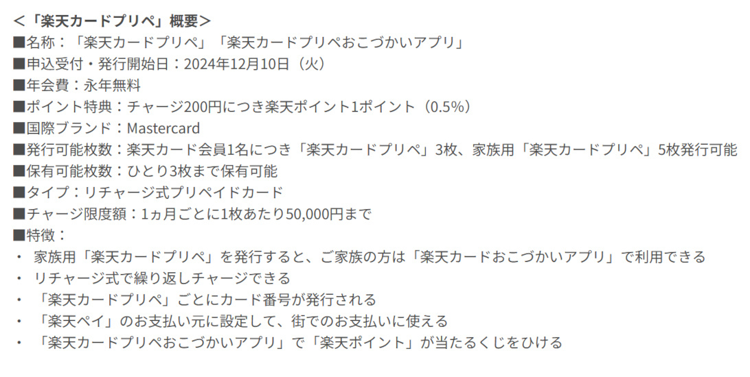 • プリペイドカード「楽天カードプリぺ」 子ども向けアプリも同時リリース