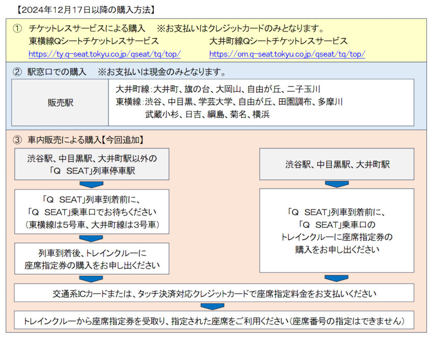 東急、有料座席指定サービス「Q SEAT」の座席指定券の車内販売を開始