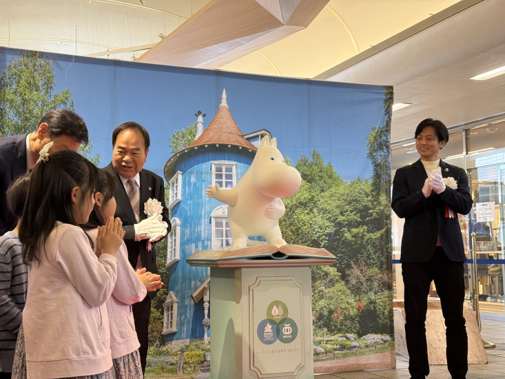 テーマパークを飛び出たムーミン 園児を迎えて西武鉄道「飯能」駅でお披露目セレモニー