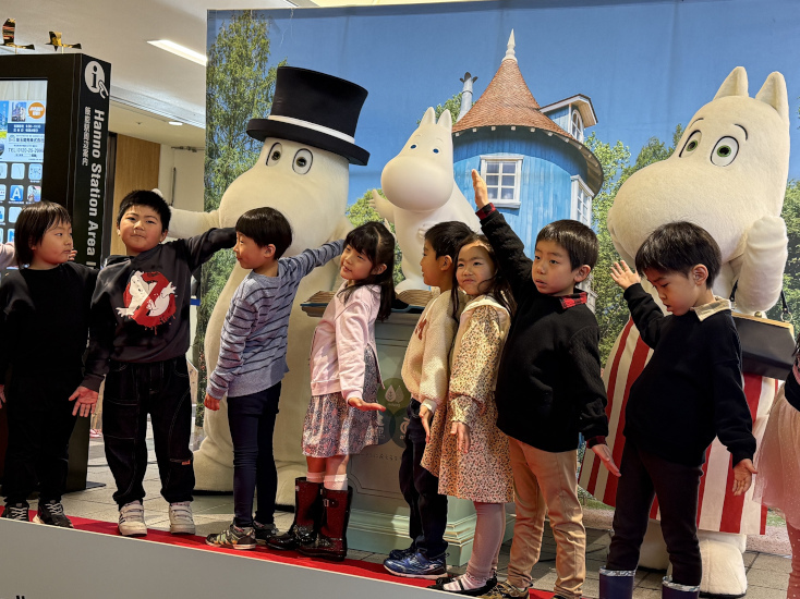 • テーマパークを飛び出たムーミン 園児を迎えて西武鉄道「飯能」駅でお披露目セレモニー