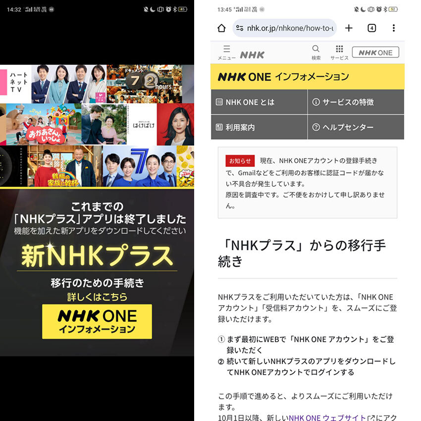 • 「NHK ONE」、サービス初日から「認証コード」が受け取れない不具合