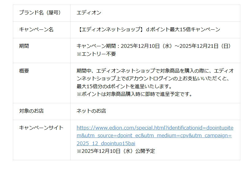 • ビックカメラ・ノジマ・エディオンでお得! dポイントキャンペーン12月に開始