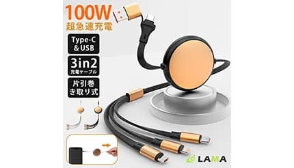 1本で6通り! 増え続けるデバイスをカバーする100W急速充電の「巻き取り式マルチケーブル」