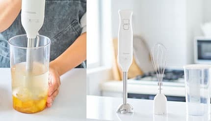 テスコム、調理の下ごしらえが時短!「つぶす・まぜる・泡立てる」で1台3役のハンドブレンダー