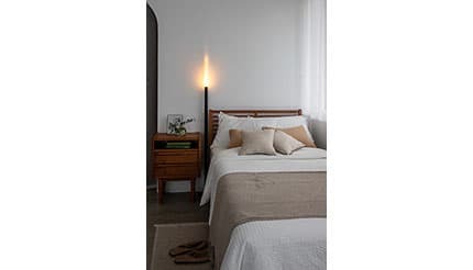 シェードもベースもない壁に立てかけるだけ!新発想フロアライト「NYOI」
