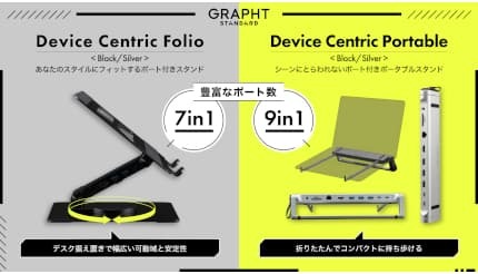 デスクワークの強い味方 GRAPHTのケーブルスッキリなポート付きノートPCスタンド2製品
