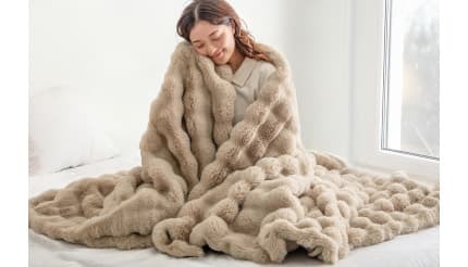 見た目も手触りも「もはや、うさぎ。」、2枚合わせ毛布がタンスのゲンから